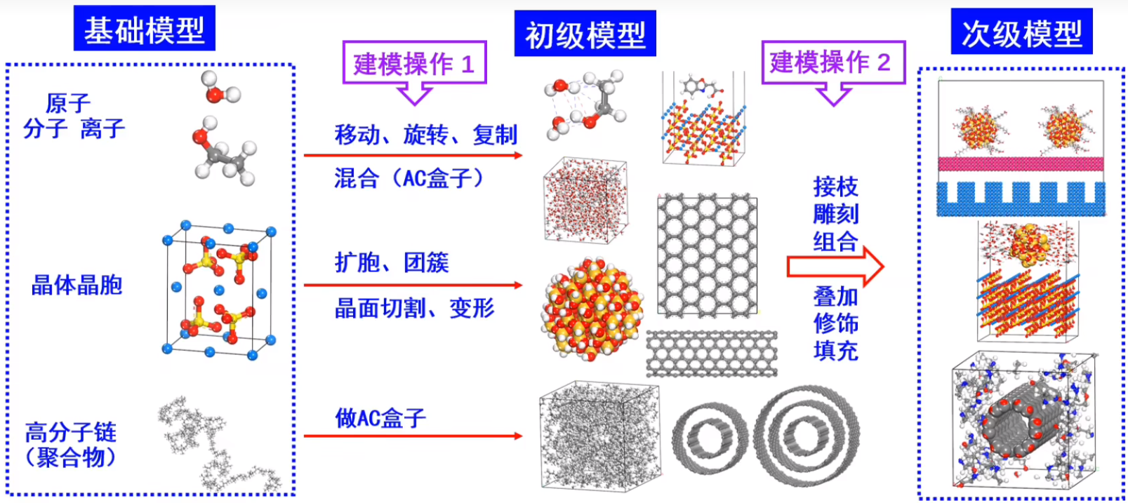 molecular modeling(MM), 是分子模拟的必备步骤. 在进行分子模拟之前,首先要把相应的实际物理模型转化为分子模拟可用的 化学体系结构文件.